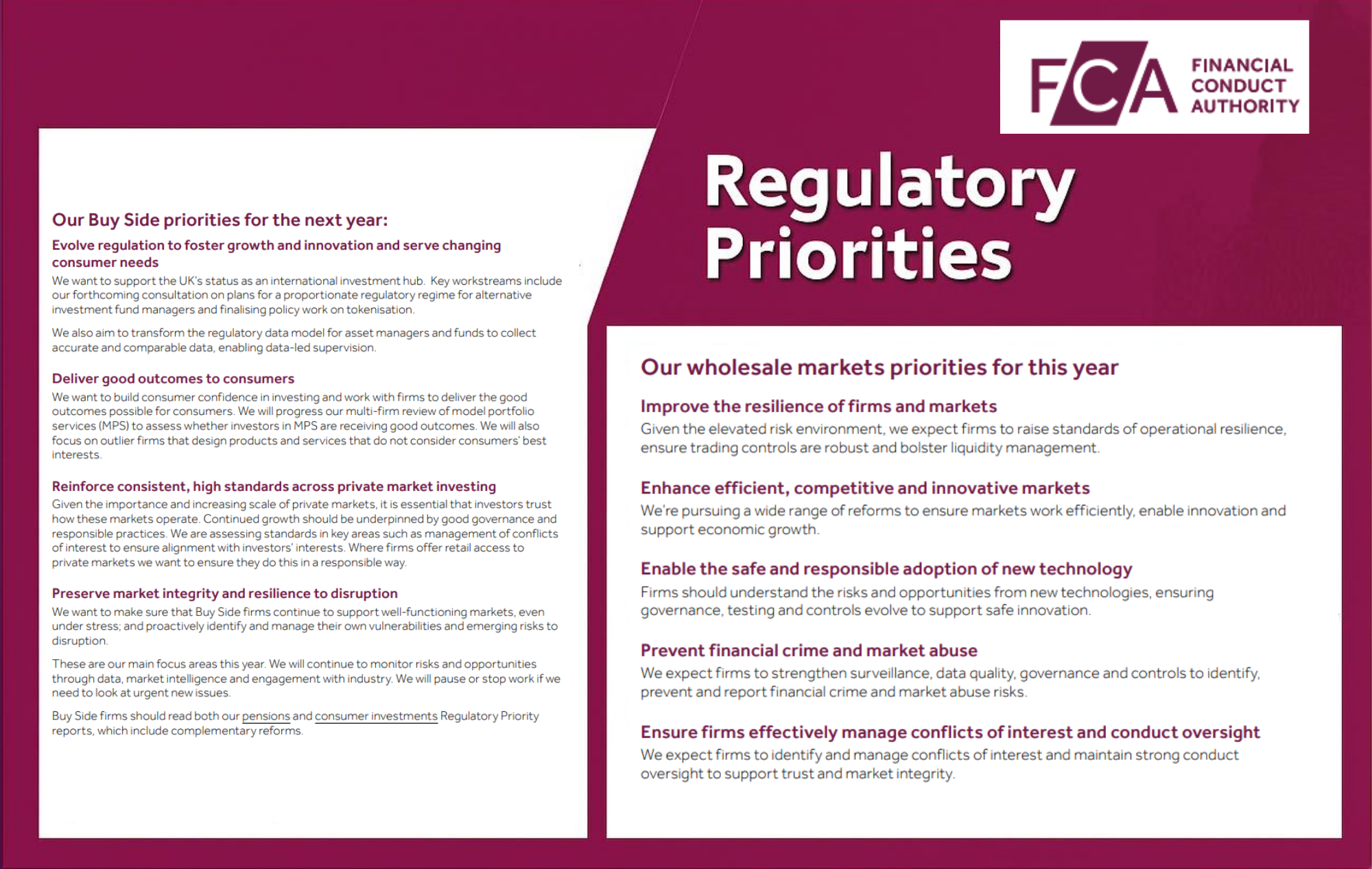 There’s something slightly different in the tone of the FCA’s latest regulatory priorities report published for wholesale markets and the buy-side.
